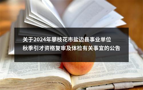 - 关于2024年攀枝花市盐边县事业单位秋季引才资格复审及体检有关事宜的公告