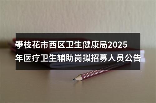 原标题:攀枝花市西区卫生健康局2025年医疗卫生辅助岗拟招募人员公告